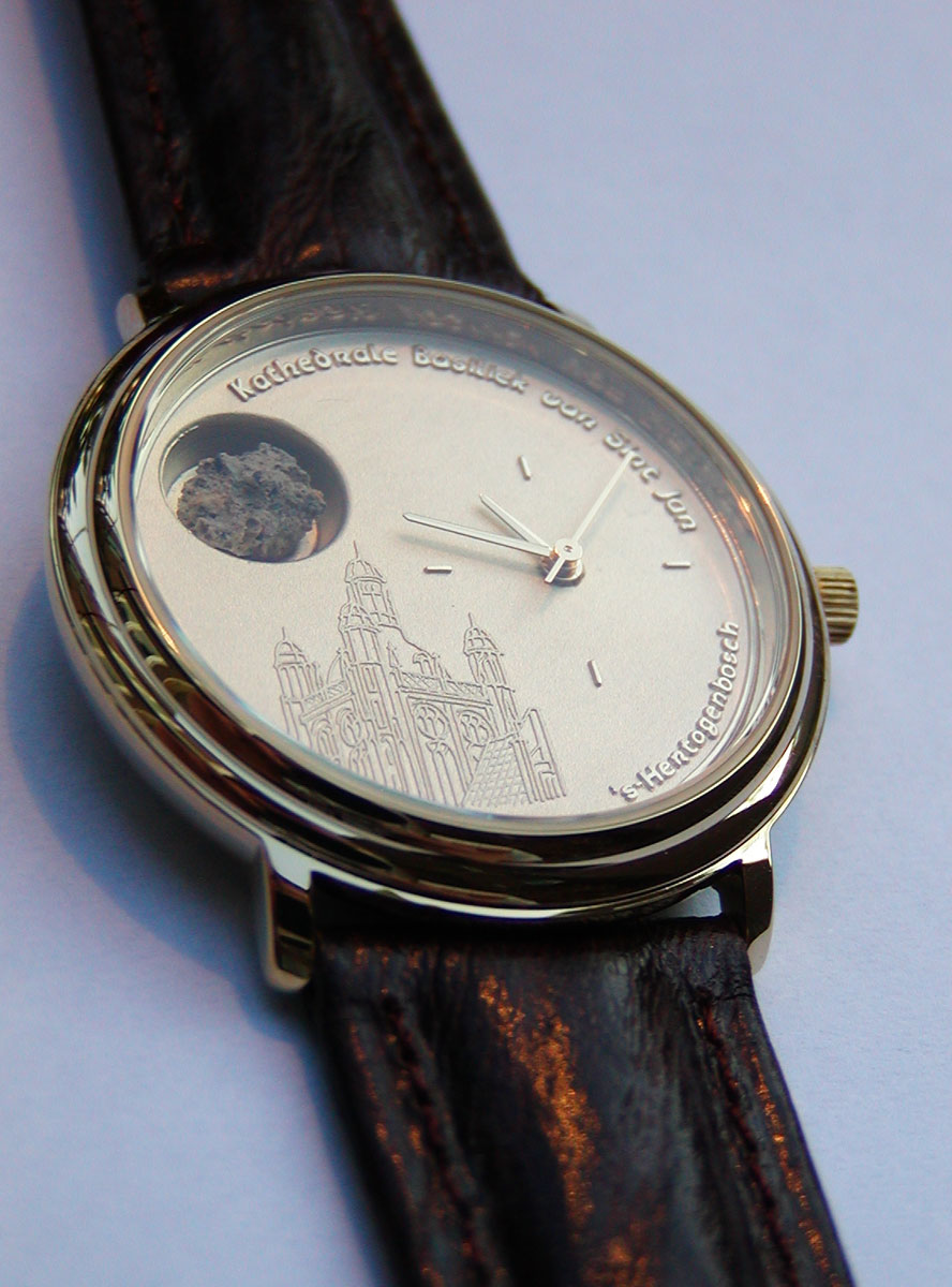 Het bij de Bosschenaren bekende Sint-Jans horloge met een echt stukje steen van de kathedrale basiliek