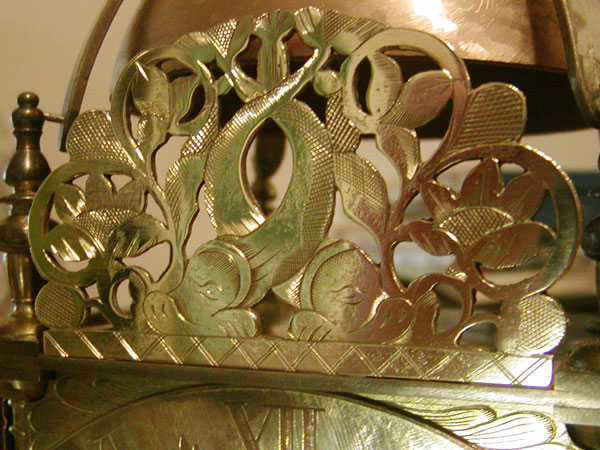 English lantern clocks usually only have an hour hand. I could not resist the temptation to engrave a few ornaments in the steel.