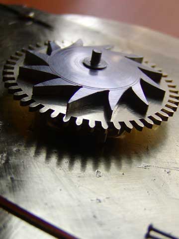 As I told before I became a member of a club in my hometown for hobby clockmakers. The goal of this club is that members build their own clock just from scratch. The members take pride in making each and every part of the clock themselves. The club home is well equipped with all the tools and machines that are needed for clock making. This is the place were I'll be spending many hours over the next months to achieve my goal. The first actual piece of work I made at the club was the arbor for the warning wheel