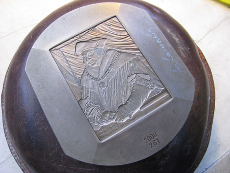 Tenslotte de plaquette naast het oorspronkelijke portret van Holbein: