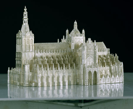 Vanaf het jaar 2000 zijn we met een team vijf jaar bezig geweest met de vervaardiging van een schaalmodel in zilver van de Sint-Jan van 's-Hertogenbosch. Mijn bijdrage aan het project was het maken van talloze stempels waarop kleine (gevel) onderdelen van de Sint-Jan zijn afgebeeld. Op deze stempels zijn vervolgens zilveren afslagen gemaakt die door de goudsmeden van ons bedrijf vakkundig zijn uitgezaagd en als een maquette aan elkaar gesoldeerd. Van de aldus ontstane grotere onderdelen zijn daarna gietmatrijzen gemaakt waarna van de tientallen gegoten onderdelen een complete Sint-Jan kathedraal is gemaakt.